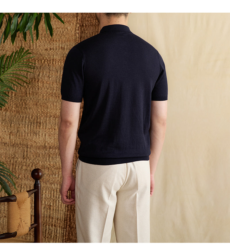 Men’s Slim Fit Tencel-Cotton Polo – Breathable Sunken Stripe Knit Shirt